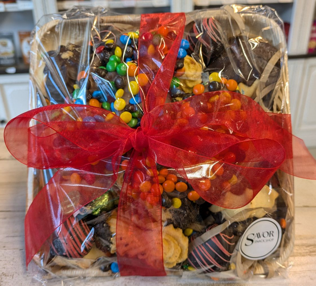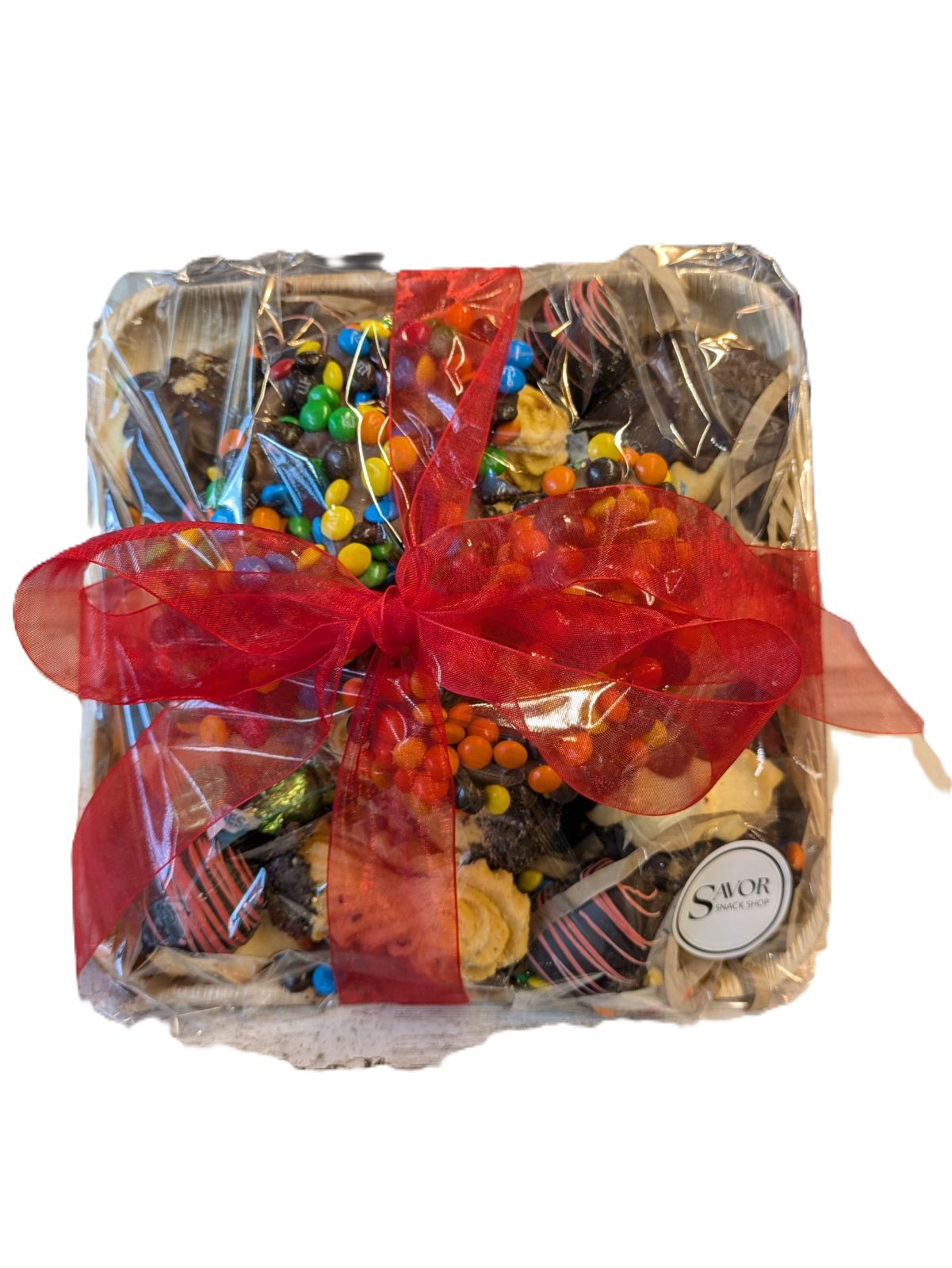 SAVOR Cookie & Pretzel Platter Tray Bamboo & Ribbon 25pc