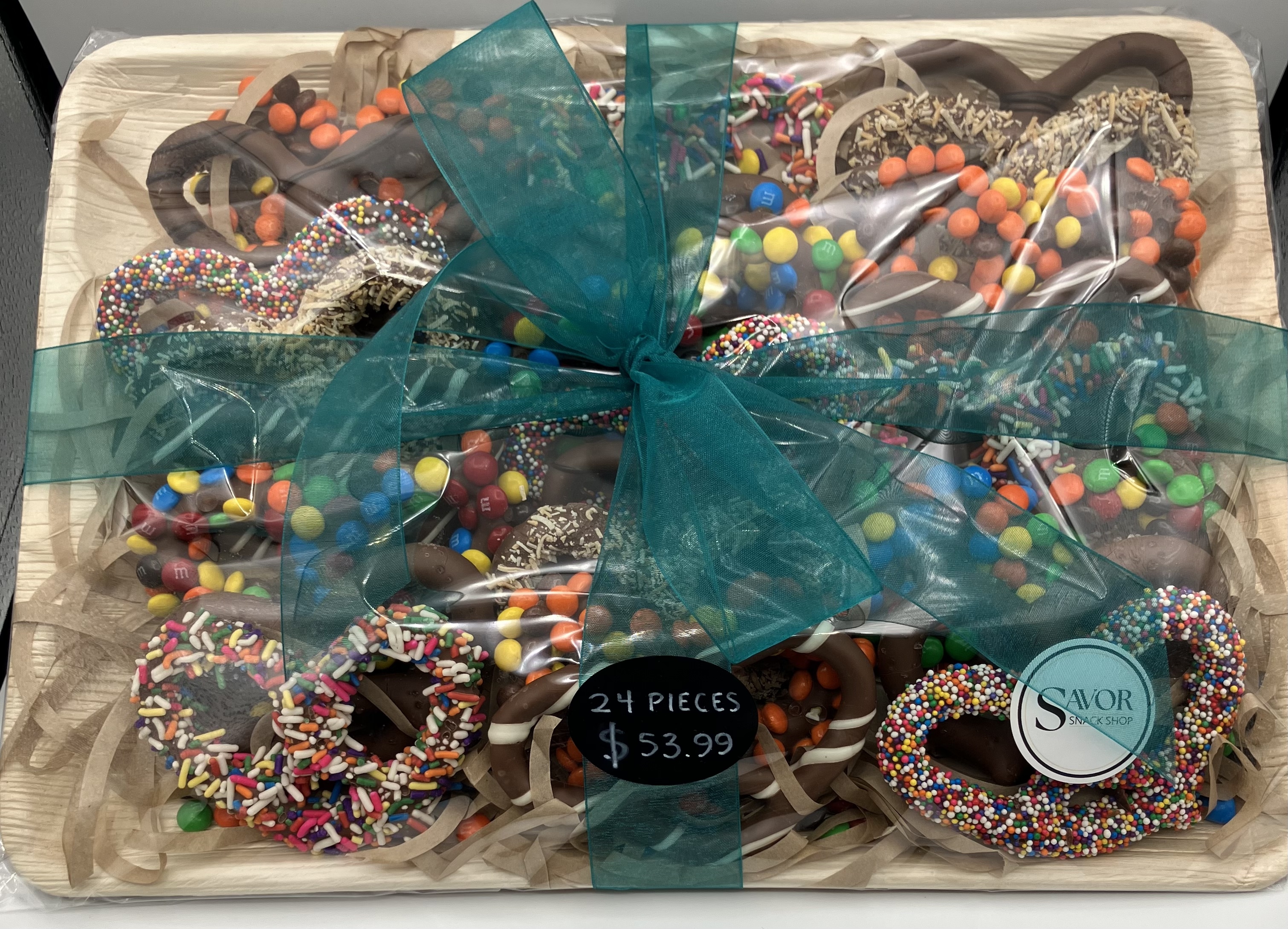 SAVOR Pretzel Platter Tray Bamboo & Ribbon 24pc